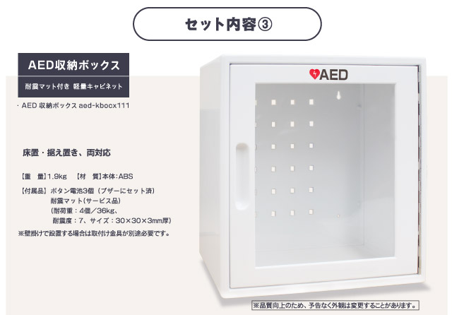 セット内容(3)AED収納ケース(軽量キャビネット aed-kbocx111)