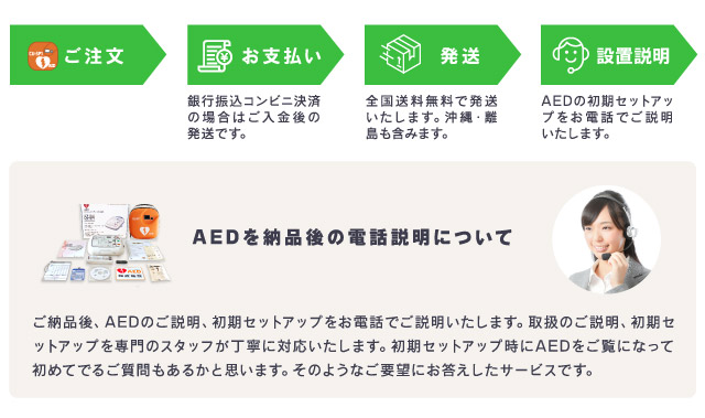 AEDのセットアップは、お電話でご説明いたします。(約15分)