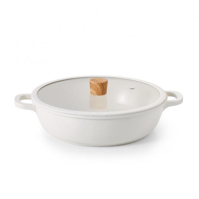 SENSARTE 両手鍋 卓上鍋 すき焼き鍋 (ホワイト&茶色(セラミック), 28cm)