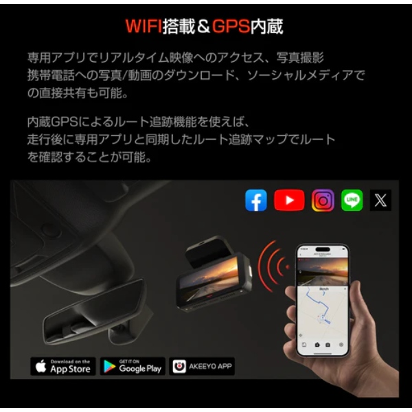 [予約]AKEEYO ドライブレコーダー+カメラ AKY-EYES 予防安全・運転支援スマートアシスト望遠+広角搭載