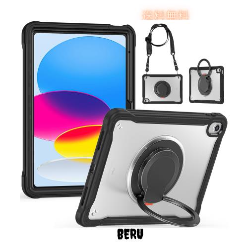 縦置き 横置き iPad 10 ケース 肩掛け 360°回転持ち手 ペン収納 iPad第10世代 2022 カバー ショルダーストラップ付き ハードPC +シリコ