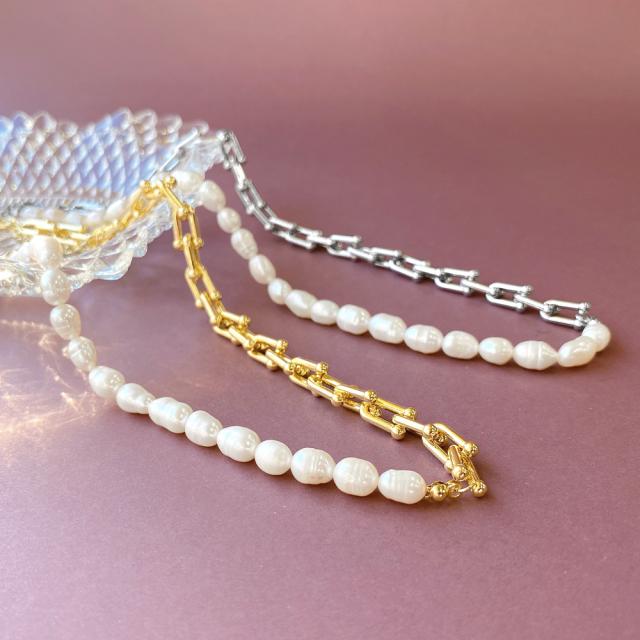 送料無料 淡水パール&デザインチェーンネックレス レディース 女性 オケージョン 淡水真珠 真珠 入学式 卒業式 結婚式 プレゼント