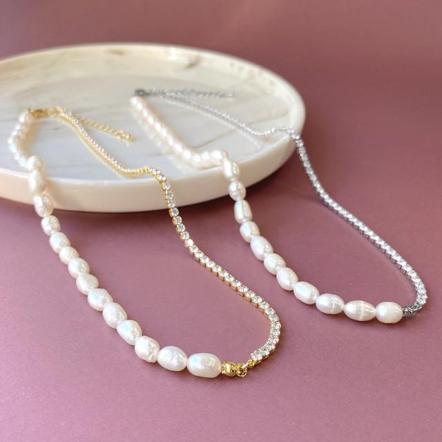 送料無料 淡水パール&ストーンチェーンネックレス レディース 女性 オケージョン 淡水真珠 真珠 入学式 卒業式 結婚式 プレゼント