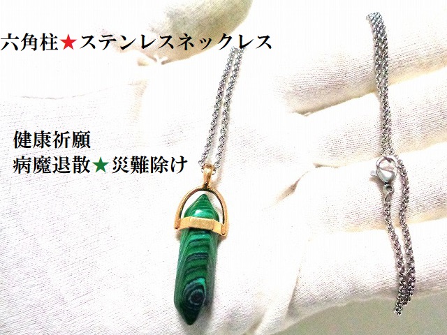健康運・病魔退散・災難除け・邪気邪念・魔除★マラカイト★六角柱・ダブルポイント★ステンレス316L★ネックレス★パワーストーン★護符(霊符)