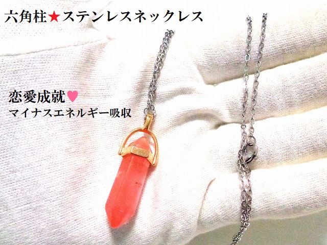 恋愛成就・直観力・創造力・氣分が明るくなる・邪気邪念・魔除★チェリークォーツ★六角柱・ダブルポイント★ステンレス316L★ネックレス★パワーストーン★護符(霊符)