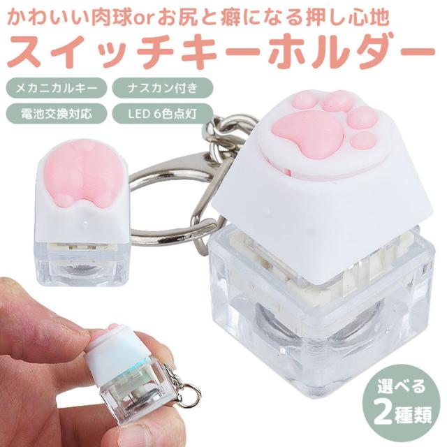 肉球 お尻 キーホルダー メカニカル キースイッチ型 青軸 ナスカン LED ストラップ フィジェット ストレス解消 スイッチ メカニカルスイッチ 電池交換対応 アニマル 動物 ねこ 猫 デザイン PR-NIKULEDKEY【メール便 送料無料】