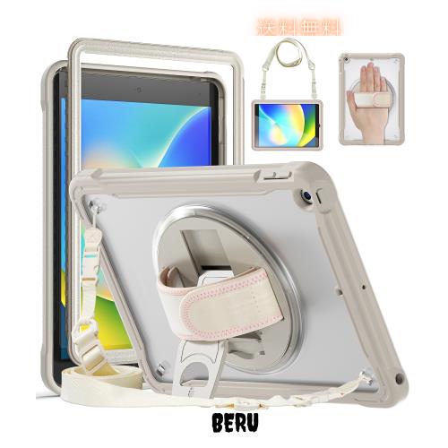 360°回転ベルト iPad 10.2 ケース iPad7 iPad8 iPad9 肩掛け ショルダー ペンシル 収納 iPad 第9世代 8世代 7世代ケース 耐衝撃 背面 半透明 カバー 縦置き/横置き スタンド ,カーキ