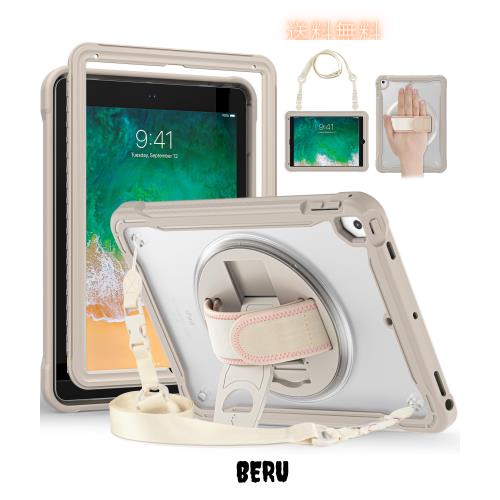 360°回転ベルト iPad 第5世代 6世代ケース 肩掛け ショルダー ペンシル 収納 iPad Air2 iPad5 iPad6 Pro9.7 ケース 耐衝撃 背面 半透明 カバー 縦置き/横置き スタンド,カーキ