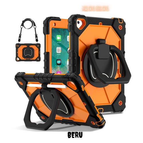 360°旋回 iPad Air2 iPad5 iPad6 Pro9.7ケース 取っ手 子ども キッズ 頑丈 iPad 第 6 5 世代 9.7 インチ カバー 持ち手付き 回転式 キックスタンド ハンドストラップ シリコン アウトドア 横置き 縦置き ペンホルダー付き多機能 耐衝撃 カバー,黒+オレンジ