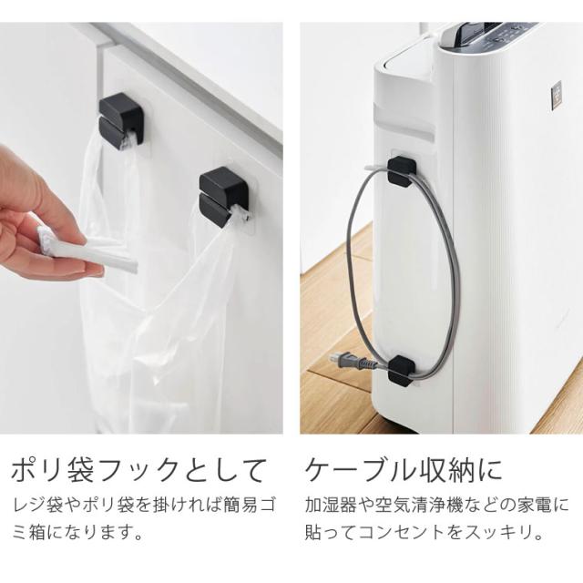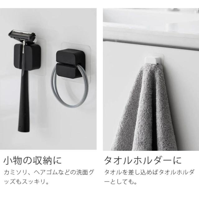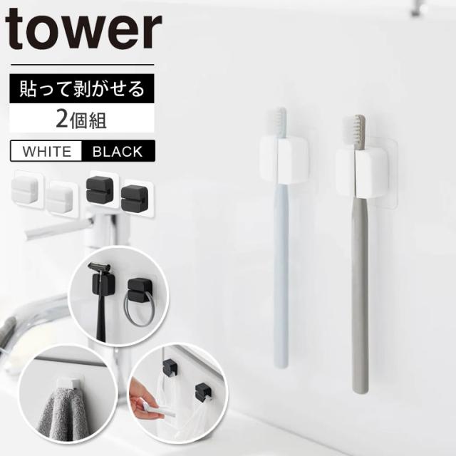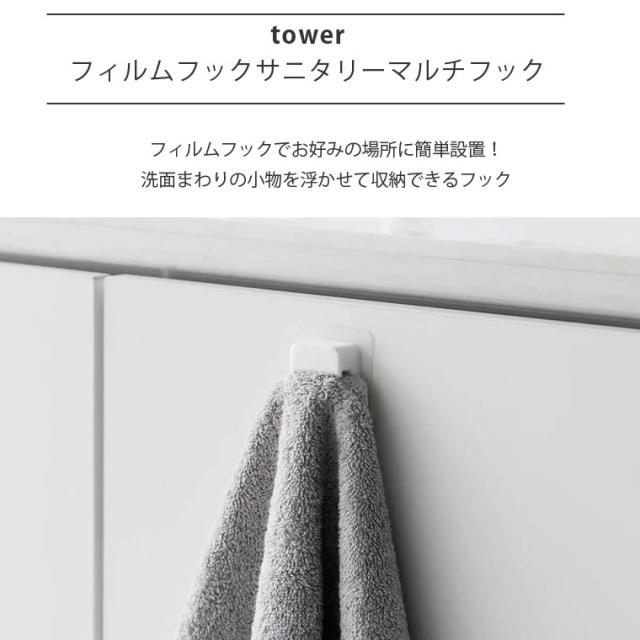 tower フィルムフックサニタリーマルチフック 2個組 タワー 1592/1593 山崎実業 浮かせる 歯ブラシスタンド タオルハンガー 剃刀 カミソリホルダー レジ袋ホルダー ポリ袋ホルダー 吊り下げ 引っ掛け 剥がせる 洗面所 洗面台 キッチン 収納 白 黒 シンプル 整理 収納