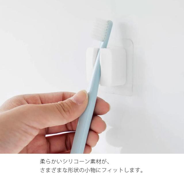柔らかいシリコーン製で、タオル、歯ブラシ、カミソリ、ヘアゴムなどを差し込んで収納できます。