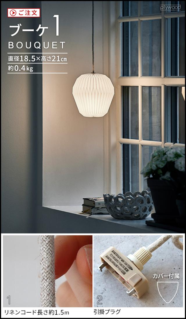 デンマーク王室御用達の老舗・照明ブランド「レ・クリント」。1枚のシートを手で折りあげたプリーツシェードは創業時から変わらず、デンマークの熟練職人のクラフトマンシップにより丁寧につくられています。こちらのブーケシリーズは、デザイナーがイタリアの街角にある花屋で見かけた無造作に束ねられたチューリップの姿をヒントに誕生。素材感のあるリネンコードやオーク材を使用した留め具などを合わせ、優しさを感じるデザインに。温かい光とやさしい影で癒しの空間を生み出し、お部屋の主役級の存在感を放ちます。