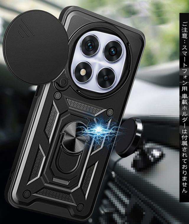 Redmi Note 14 Pro+ 5G ケース 耐衝撃 カバー マグネット式車載ホルダ対応 スライド式カメラレンズカバー付き レンズ保護 スタンド機能 リング付き 2重構造 小米 シャオミ レッドミー ノート14 プロ プラス アンドロイド おすすめ おしゃれ シャオミー