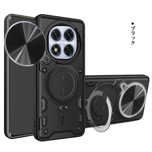 Redmi Note 14 Pro+ 5G ケース 耐衝撃 カバー マグネット式車載ホルダ対応 スライド式カメラレンズカバー付き レンズ保護 スタンド機能 リング付き 2重構造 小米 シャオミ レッドミー ノート14 プロ プラス アンドロイド おすすめ おしゃれ シャオミー