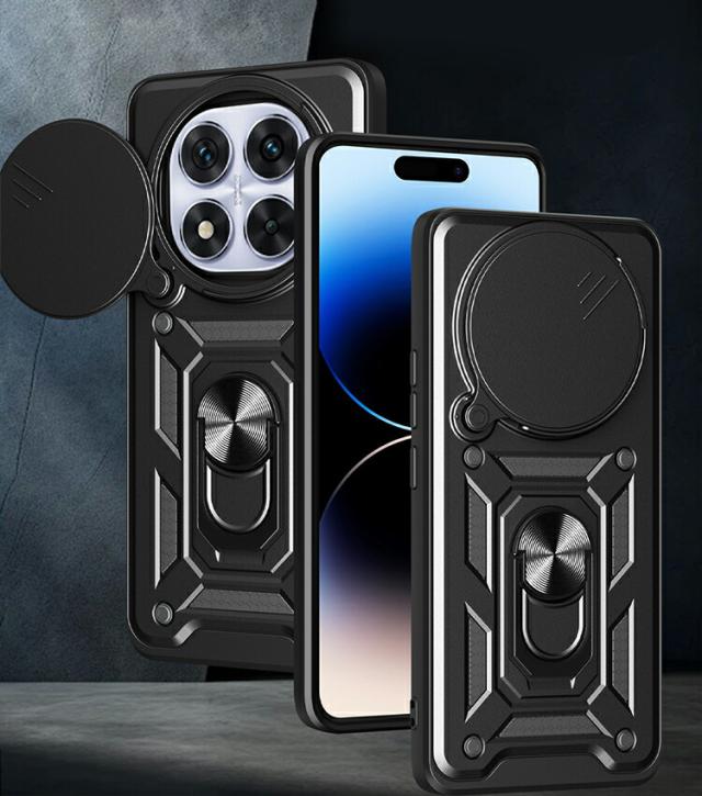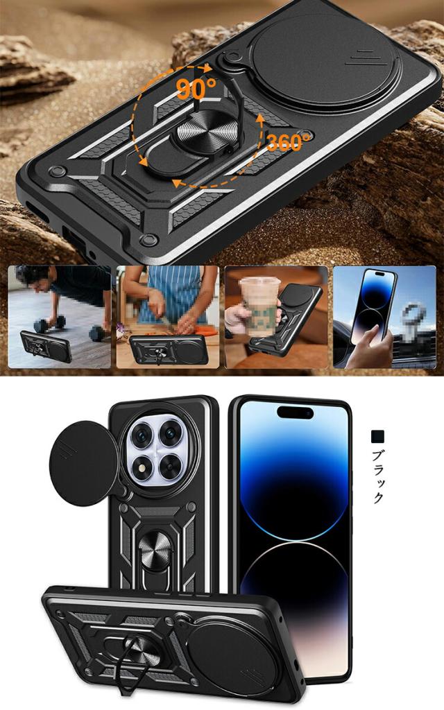 Redmi Note 14 ケース Note 14 Pro カバー 耐衝撃 マグネット式車載ホルダ対応 スライド式カメラレンズカバー付き レンズ保護 スタンド機能 一体型リング付き 2重構造 ストラップ穴 小米 シャオミ レッドミー ノート14/14 プロ アンドロイド おすすめ おしゃれ