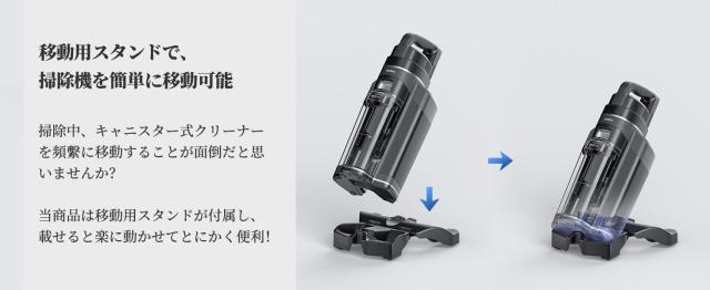 ■移動用スタンドが付属、カーペット洗浄機として使っても楽に移動。