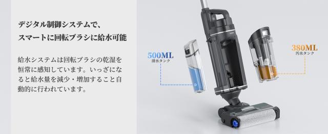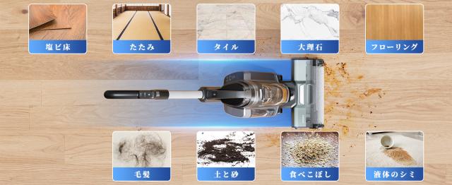 驚異的な清潔力を実現!回転ブラシ(モップ)は1分あたり600回の超高速回転スピードで、床を素早くピカピカに。水拭き・乾拭き二つの掃除モードが搭載し、床の種類や汚れの程度に合わせて切り替えて使用可能。ゴミはもちろん、床にこぼした液体ゴミもしっかり吸い取れる。※適用の床:塩ビ床、たたみ、タイル、大理石、フローリングなど。