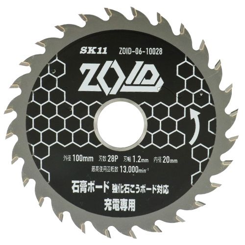 【メール便送料無料】藤原産業 SK11 充電専用チップソー ZOID ゾイド 丸鋸用 石膏ボード 強化石こうボード対応 100mm 28P ZOID-06-10028
