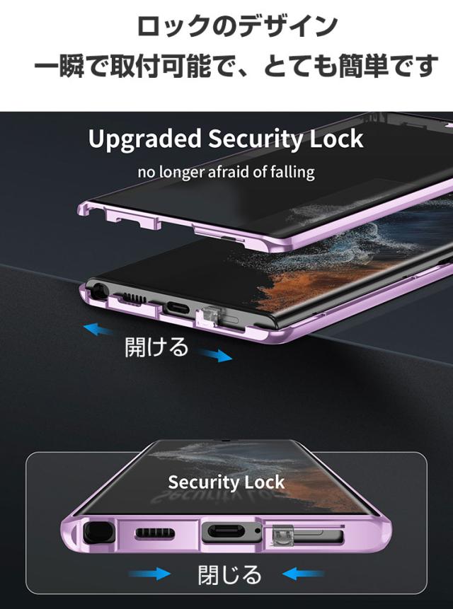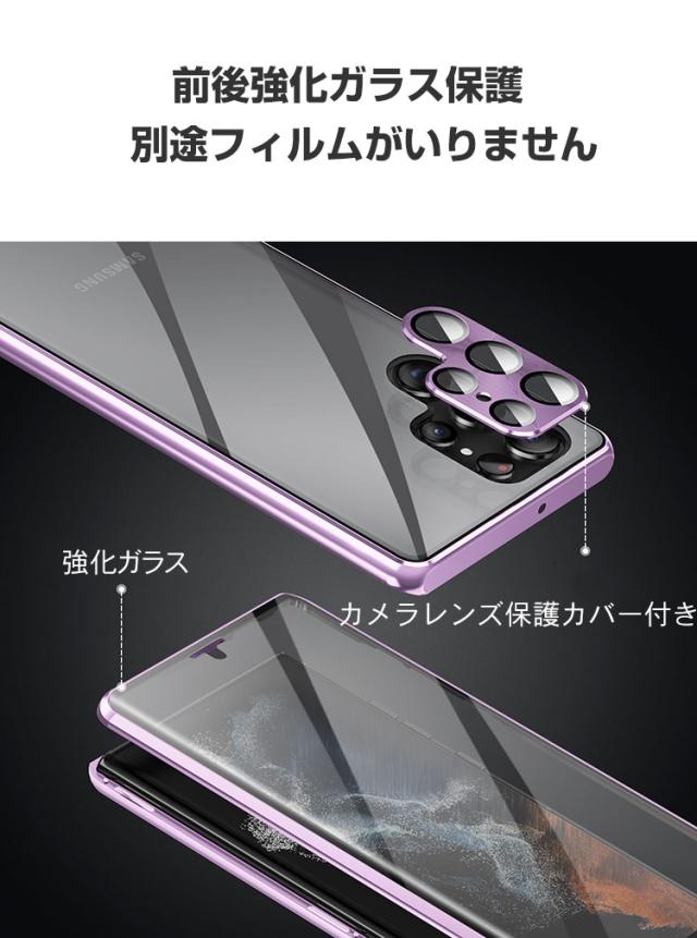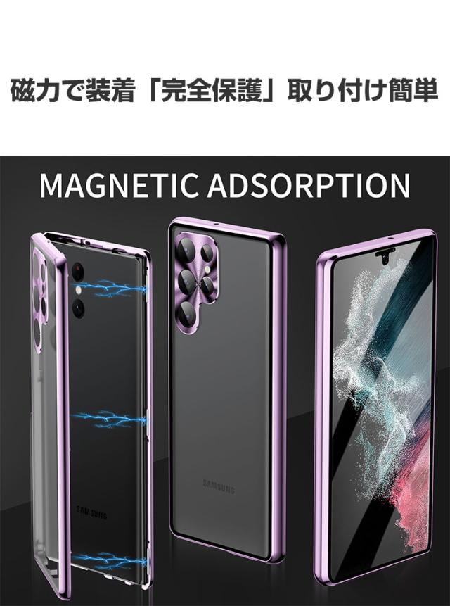Samsung Galaxy S25 Ultra ケース 金属 アルミニウムバンパー 前後強化ガラス保護 メタルケース CASE マグネット装着 持ちやすい 耐衝撃 クリア 正面背面パネル付き 全面保護 高級感があふれ 軽量 人気 Galaxy S25 Ultra アルミサイドバンパー ケース カバー