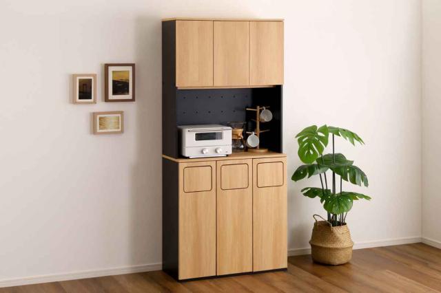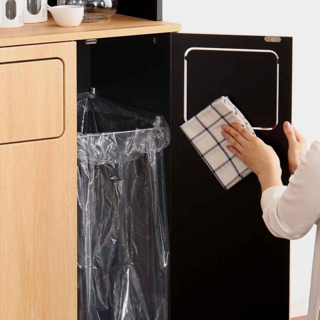 ゴミ箱上の空間を収納として利用でき、デッドスペースを有効活用できます。キッチン周りの収納や家電、ゴミ箱のスペースもこれ一台でスッキリまとまります。