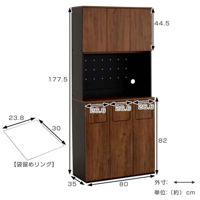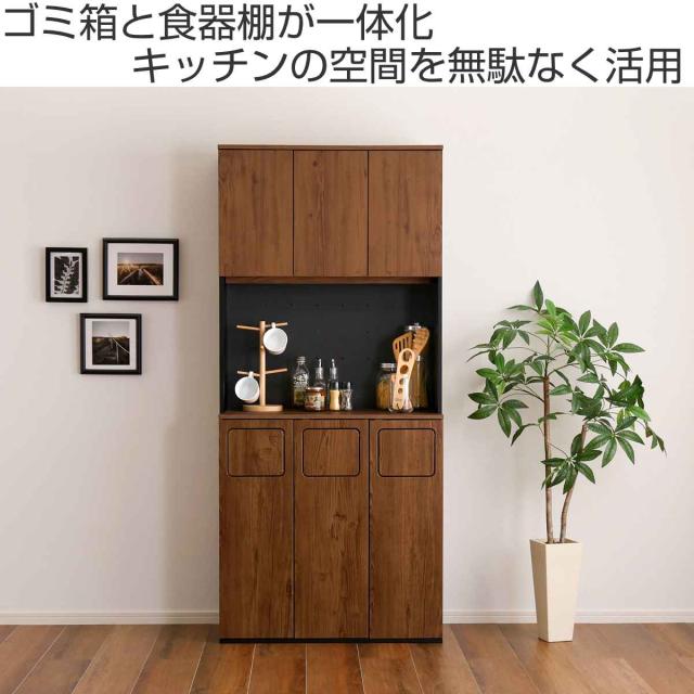 ゴミ箱一体型食器棚 幅80cm ゴミ箱3つタイプ45L対応 ヴィンテージ ( ごみ箱 食器棚 スペース 付き 収納付き おしゃれ 大容量 棚 家具 キッチン キッチンラック 収納 ダストボックス ラック 2口コンセント コード穴付き )