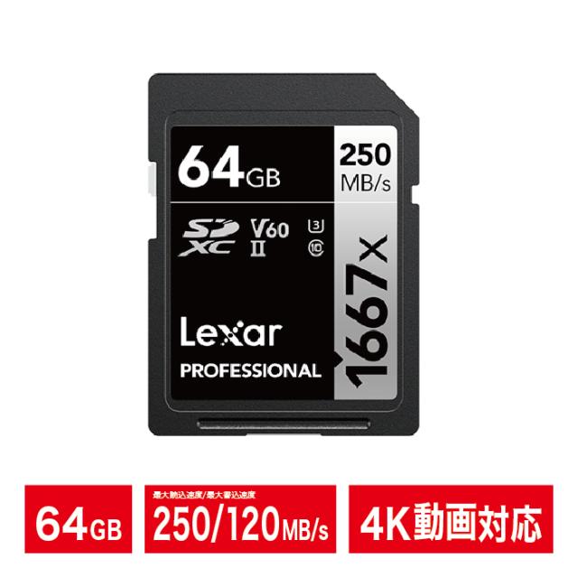 Lexar レキサー Professional 1667x SDXC 64GB 4K動画 高速転送 耐振動 防磁 耐衝撃 落下保護 耐摩耗 プロ仕様 UHS-II LSD64GCB1667【ネコポス便配送制限12点まで】
