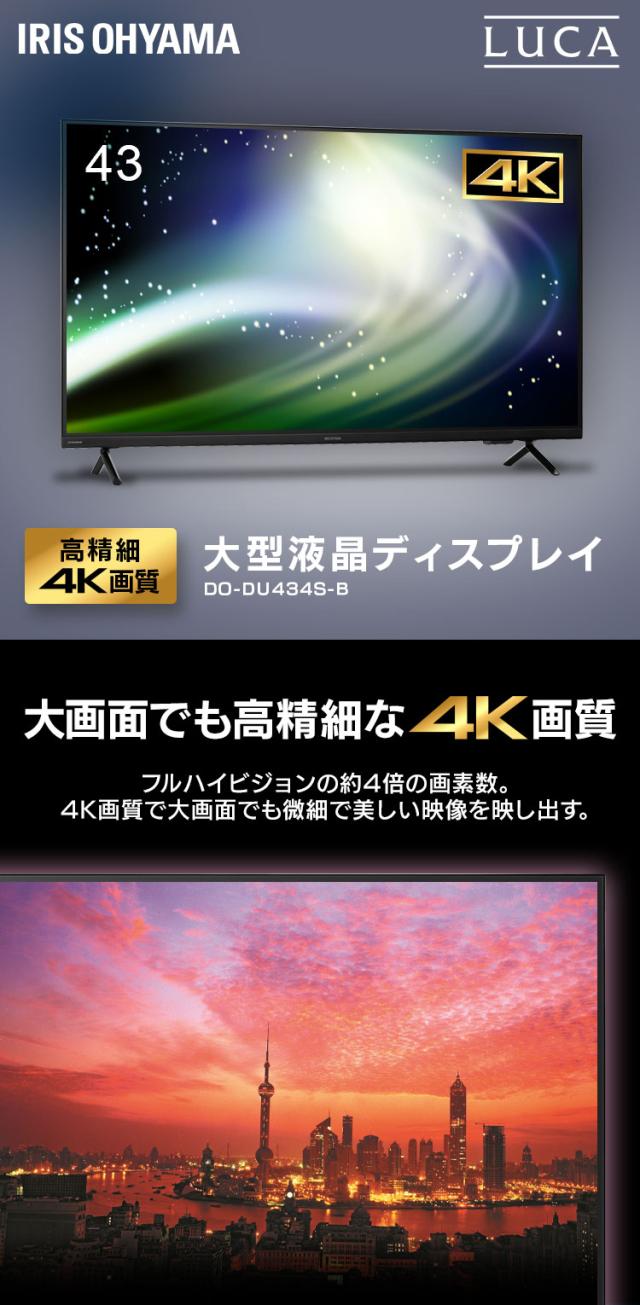 大型ディスプレイ 43型 4K 高精細 ハーフグレア 反射を低減 壁掛け オフィス 会議 学校 授業 43v型 大型モニター 液晶ディスプレイ DO-DU434S アイリスオーヤマ *