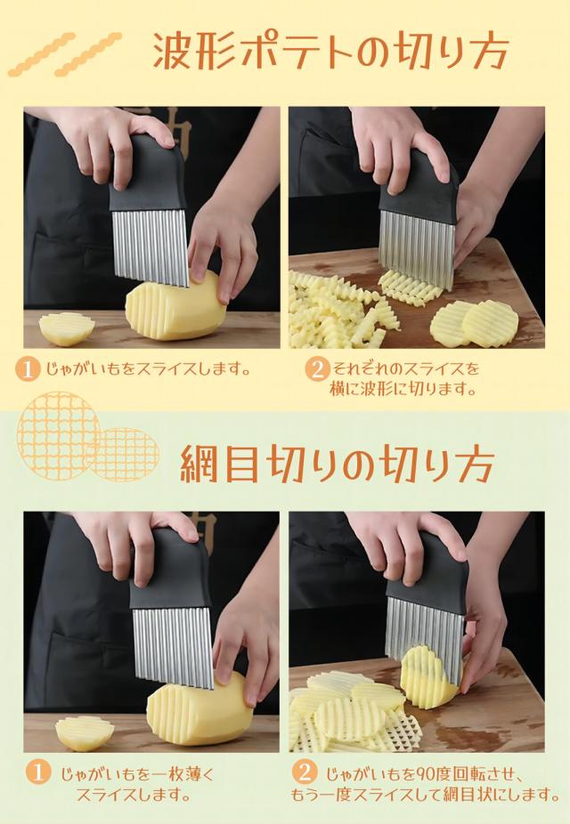 SNS話題商品!波型カッター ポテトカッター ナイフ 波型 包丁 飾り切り フランス風 フライドポテトに ベトナム料理 野菜 ポテトスライサー インド 調理器具 食器 アジアン食品 エスニック食材