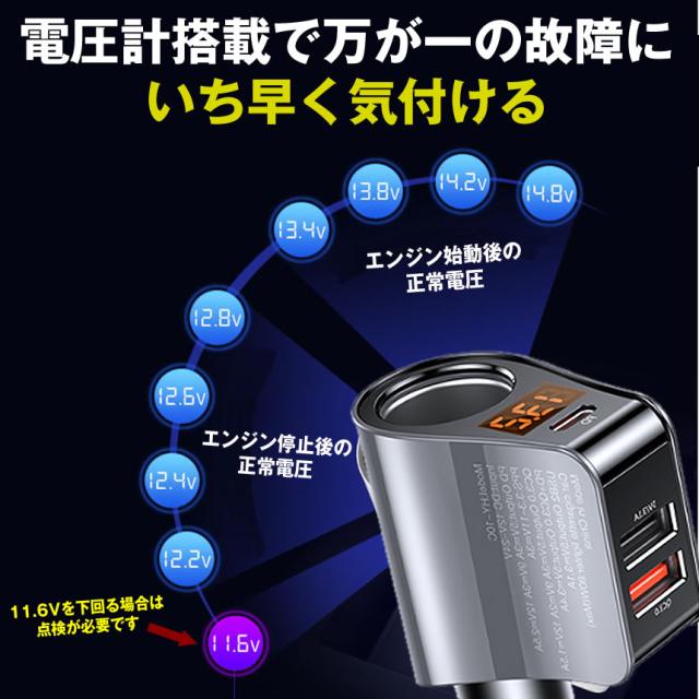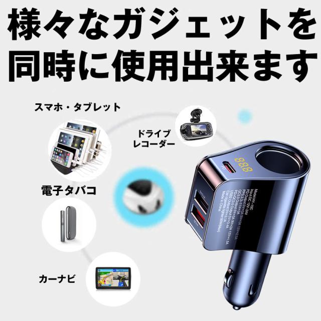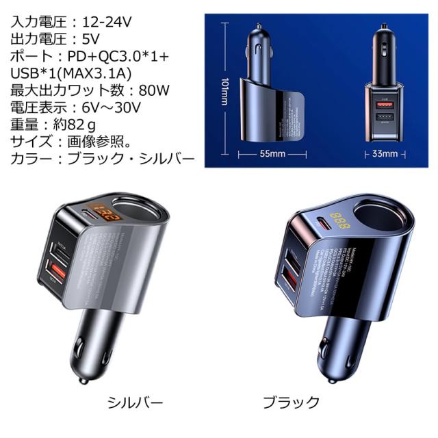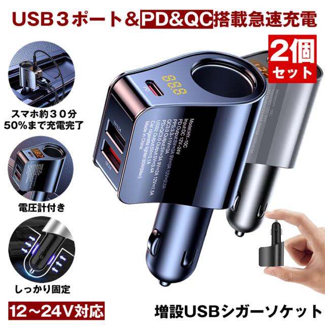【2個セット】 シガーソケット カーチャージャー USB 充電器 電圧計 増設 急速 充電 USBポート PD QC3.0 車 急速充電 車載充電器 スマホ スマートフォン タブレット Android アンドロイド アイフォン ドラレコ ドライブレコーダー カーナビ 12V 24V シガーライター