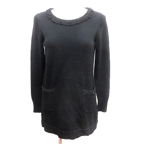 【中古】エムズセレクト m’s select ニット ワンピース ミニ ツイード 長袖 36 S 黒 ブラック /AU レディース