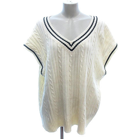 【中古】リシェグラマー ニット ベスト プルオーバー Vネック オーバーサイズ ライン ケーブル M アイボリー 白