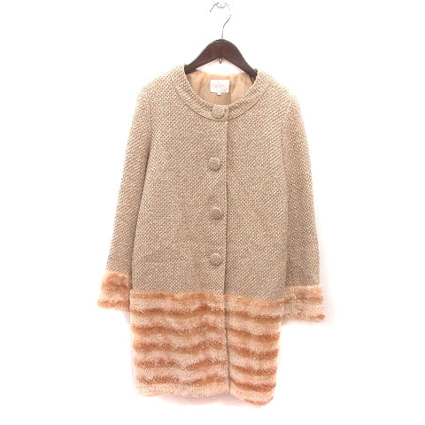 【中古】グローブ grove ノーカラーコート 総裏地 総柄 L ベージュ /MS レディース