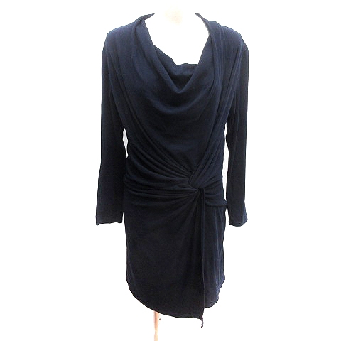 【中古】アズノウアズ ドゥバズ as know as de base ニット ワンピース ひざ丈 ドレープ 長袖 紺 ネイビー レディース