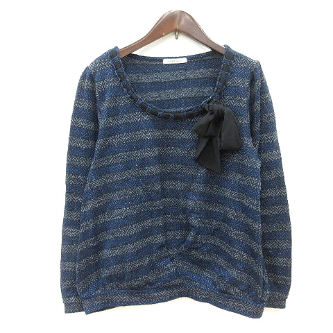 【中古】アクシーズファム axes femme ニット セーター ボーダー 長袖 ラメ リボン M 紺 ネイビー /MN レディース