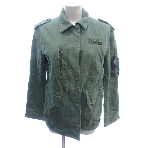 【中古】ロイスクレヨン Lois CRAYON ミリタリージャケット ステンカラー スタッズ M カーキ 緑 グリーン レディース