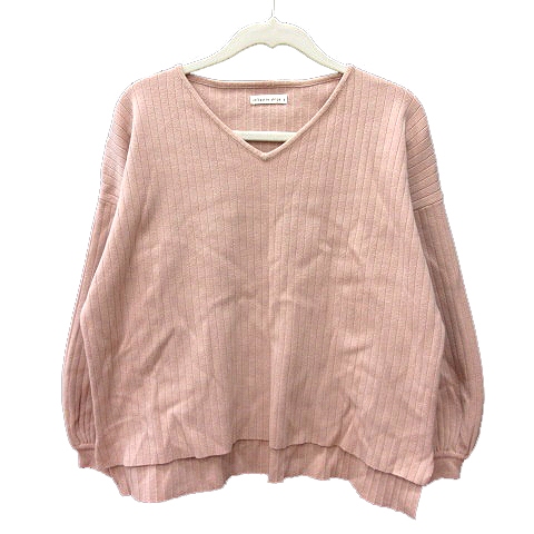 【中古】リフラッティ シップス liflattie ships ニット カットソー Vネック 長袖 リブ S ピンクベージュ レディース