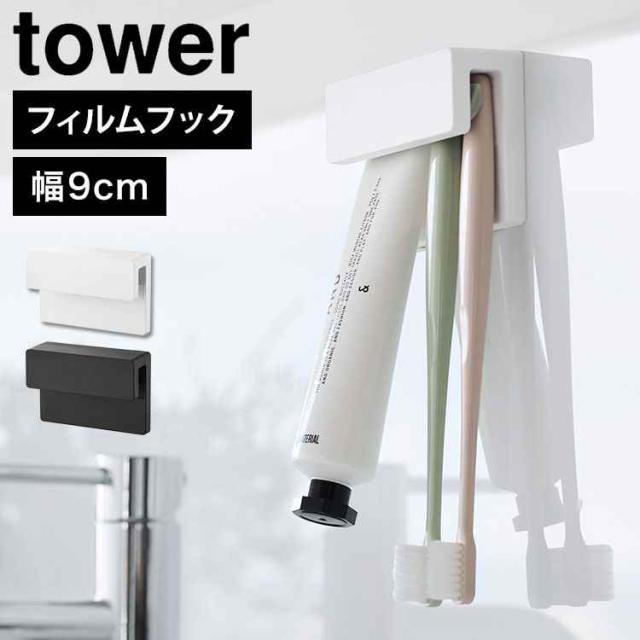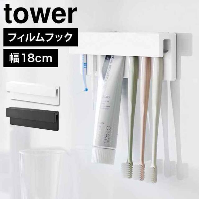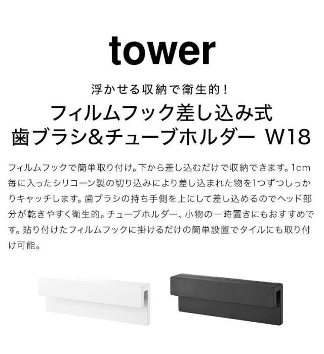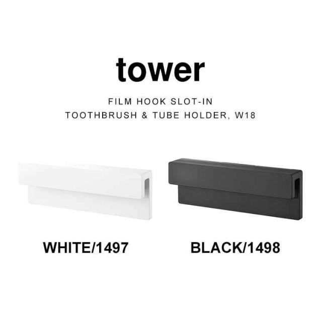 フィルムフック差し込み式歯ブラシ&チューブホルダー W18 山崎実業 タワー 歯ブラシ ホルダー 歯磨き粉 チューブ 収納 tower 洗面所 はぶらし フック おしゃれ スタイリッシュ シンプル 歯ブラシホルダー チューブホルダー 1497 1498 ホワイト ブラック 浮かせる収納 公式