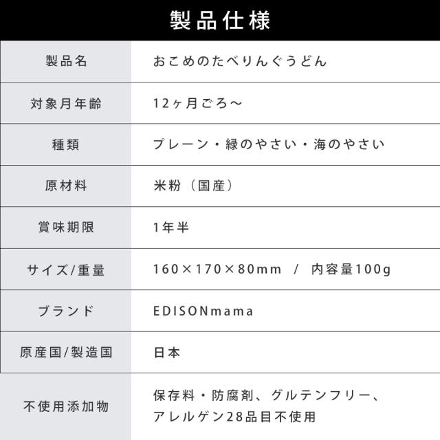 おこめのたべりんぐうどん NEW 【選べる10個セット】 プレーン 緑のやさい 海のやさい 赤ちゃん 国産 米粉 100% うどん 離乳食 無添加 食塩不使用 手づかみ 食べ ベビー フード 時短 エジソンママ たべりんぐうどん りんぐうどん リングうどん