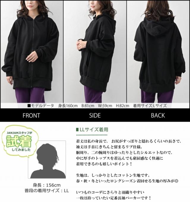 肌寒い日に最適な ジップアップ長袖パーカー。 ゆとりあるシルエットと袖設計が 体のラインをさりげなくカバー。 シンプルなデザインで流行に左右されず いつものコーデに簡単にプラスできます。 |