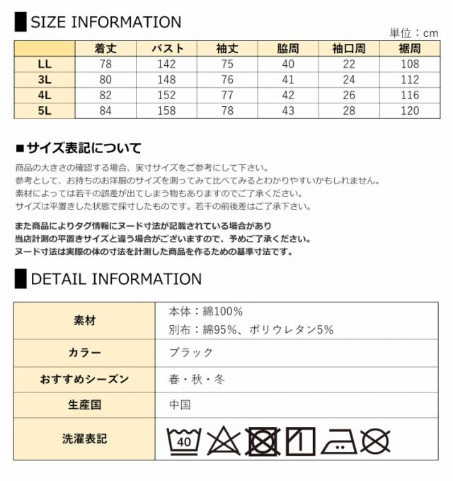 4L:着丈82 バスト152 袖丈77 脇周42 袖口周26 裾周116