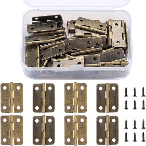 平蝶番 ヒンジ 丁番 ミニ蝶番 木箱用 4穴 50個入り ネジ付 収納ボックス付き 用金物 手芸 手作り パーツ 金具 (レトロカラー)
