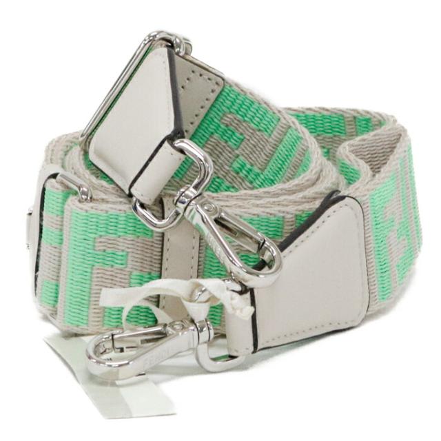 ストラップ ユー FFジャカードウェビング ショルダーストラップ キャンバス / カーフレザー ズッカ柄 8AV386 バッグアクセサリー 交換用 ストラップ レディース メンズ アイボリー / ライトグリーン
