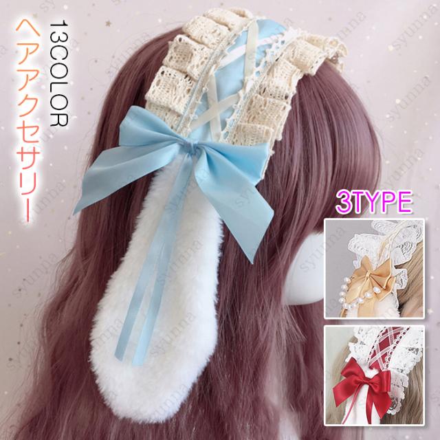 ●13color 3type ロリータファッション・コスプレ におすすめの、とっても可愛い うさぎ耳 ロリータ風のカチューシャです