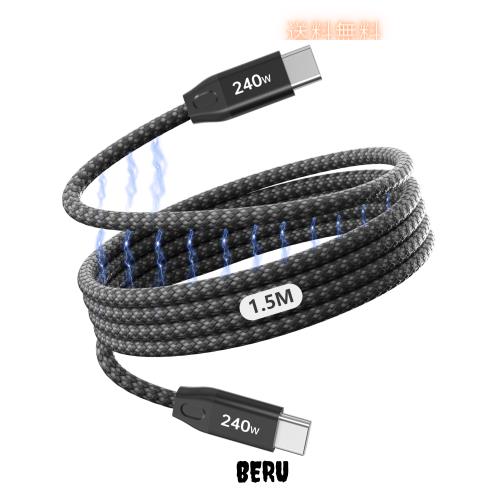 タイプc ケーブル 磁気自動収納 240W/5A マグネット充電ケーブル 急速充電【1.5M】 USB-C-ケーブル 同期データ転送 CtoCケーブル 磁気 ナ