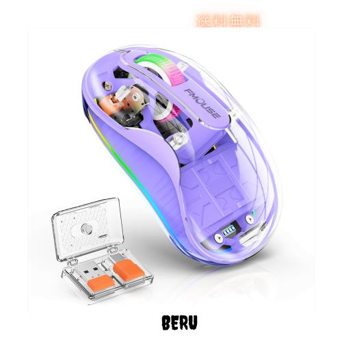 「人体工学的なデザイン」人体工学に基づいたデザインを採用しており、手に自然にフィットし、手首や手の疲れを最小限に抑えます。透明カバーは見た目がいいまま、マウスをしっかりと握りやすくしています。