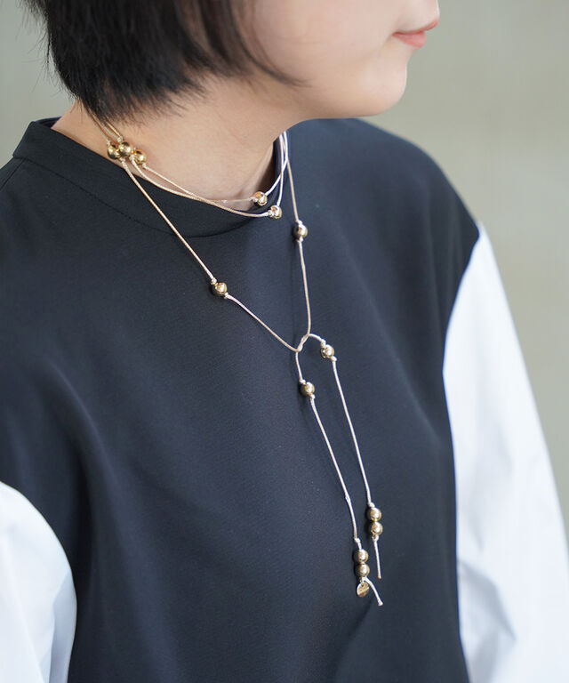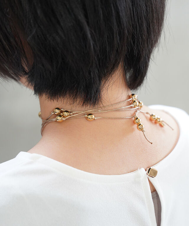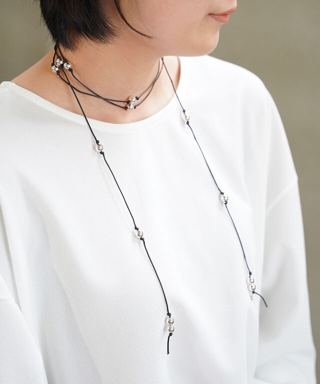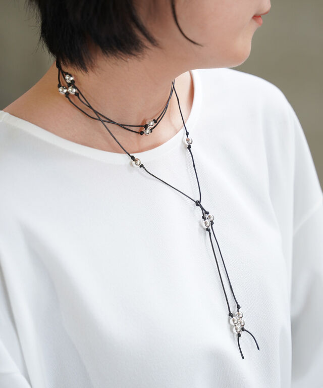 マルチWAYでアレンジ自在な丸玉コードチョーカーは、しなやかなコードと軽い着け心地が◎