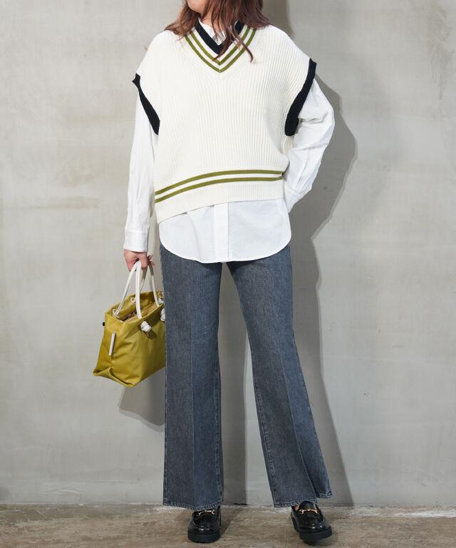 センタープレス加工入りで、カジュアルにもキレイ目にも使える汎用性の高い1本。
