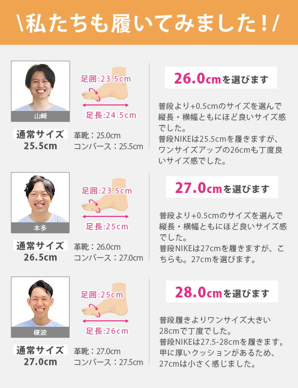 甲高、幅広の方→「1.0cm大きめ」