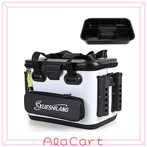 タックルボックス ロッドホルダー付き タックルバック 釣りバッカン 竿受け 収納コンテナ付き プライヤーホルダー付き (白M 40cm)