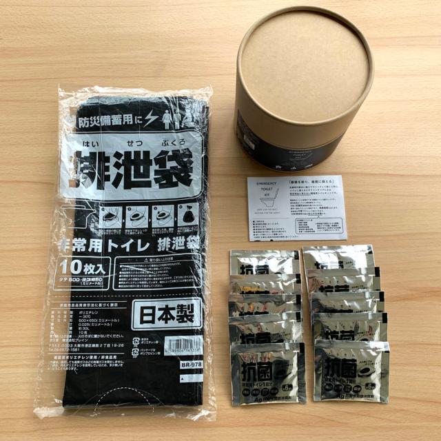 日常に馴染むデザインの緊急用トイレキットを備えて、万が一のときに備えましょう。